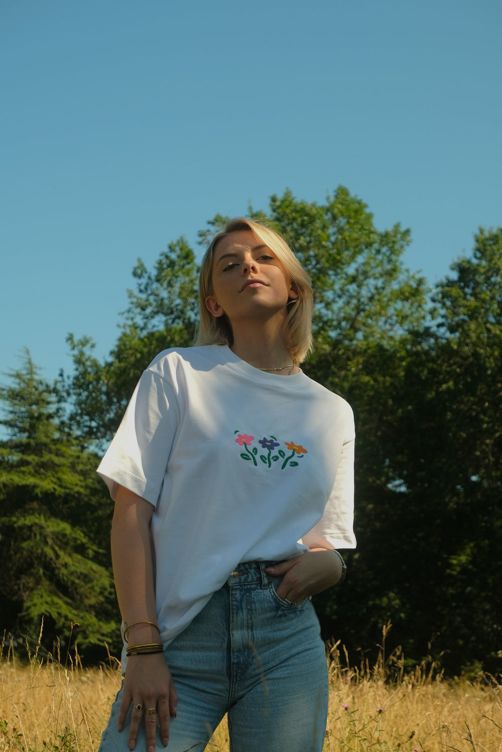 Tandis qu’ils dansent parmi les fleurs, trois d’entre elles se distinguent : une aux pétales roses qui émet une douce musique électronique, une autre violette qui crée des beats énergiques, et enfin une rouge et dorée, qui libère des sons profonds et mystérieux.