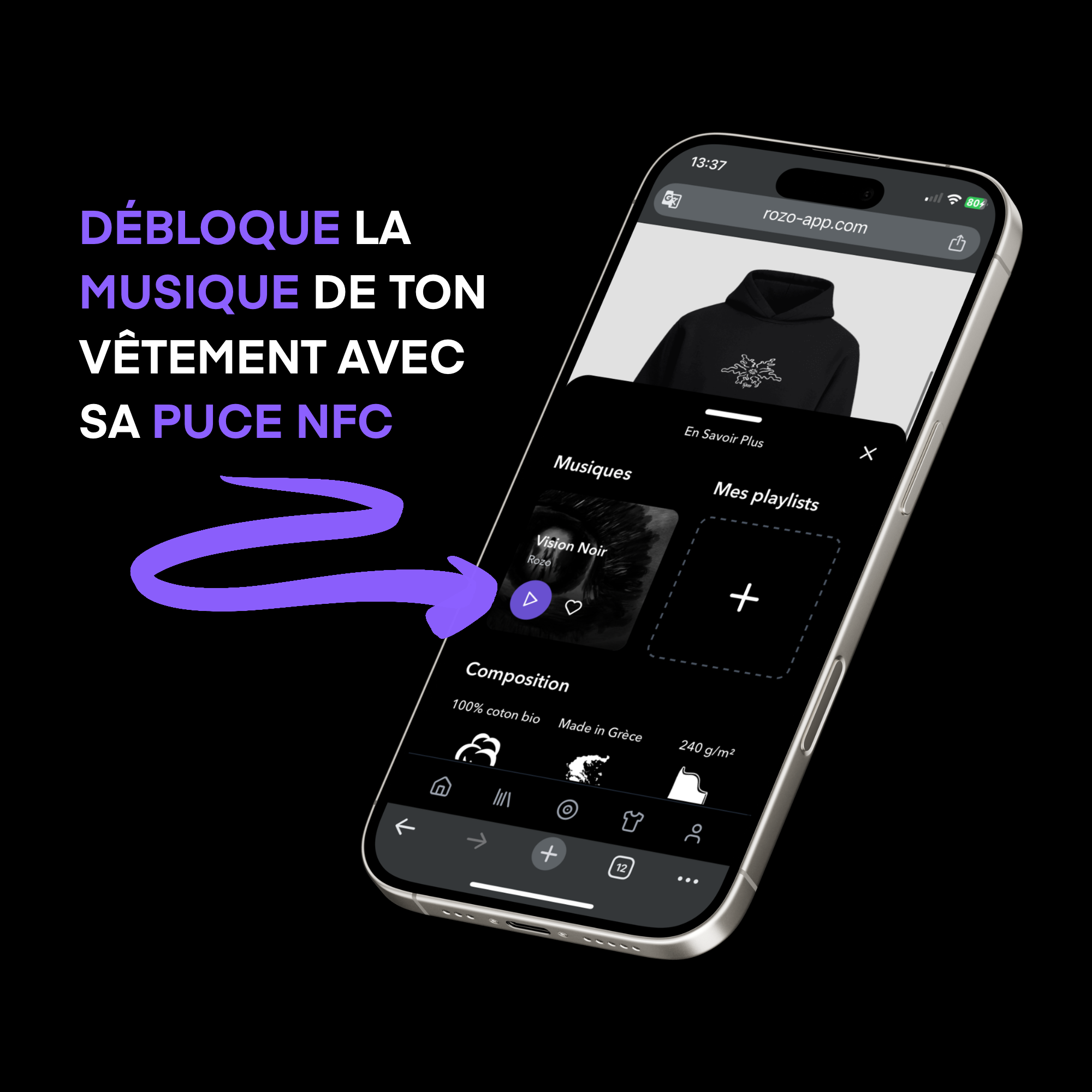 Grâce à une puce NFC intégrée, scanne ton vêtement pour débloquer un morceau unique lié à son univers.