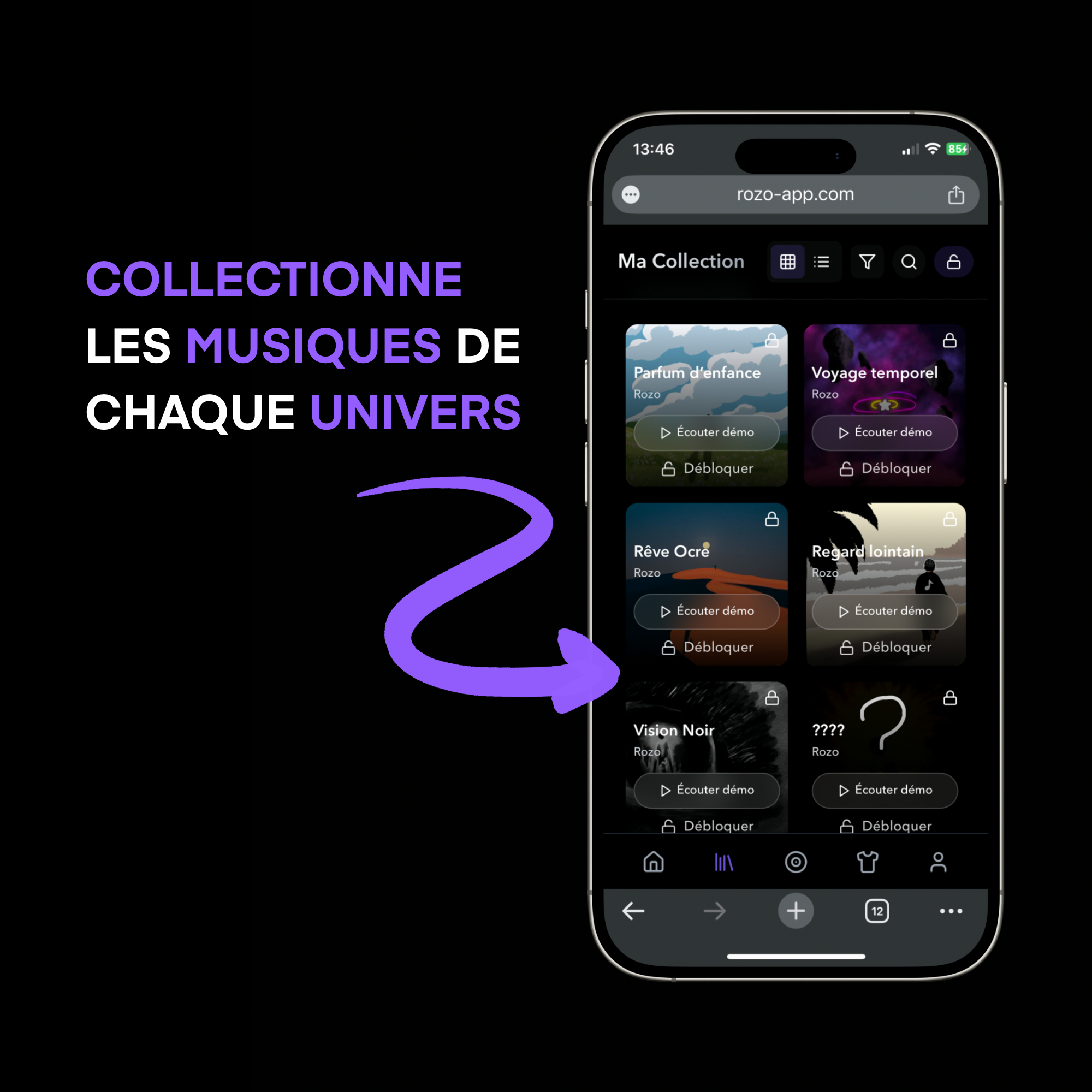 En collectionnant les pièces, tu découvres de nouvelles musiques et histoires. Une fusion innovante entre mode et son, où chaque création devient une expérience artistique à part entière.