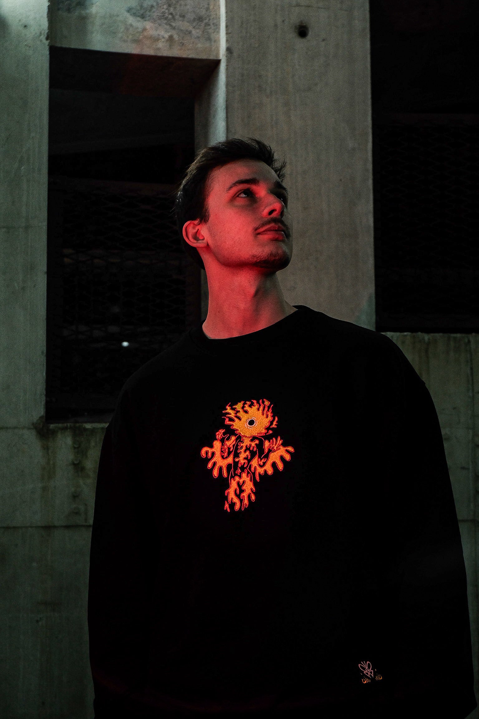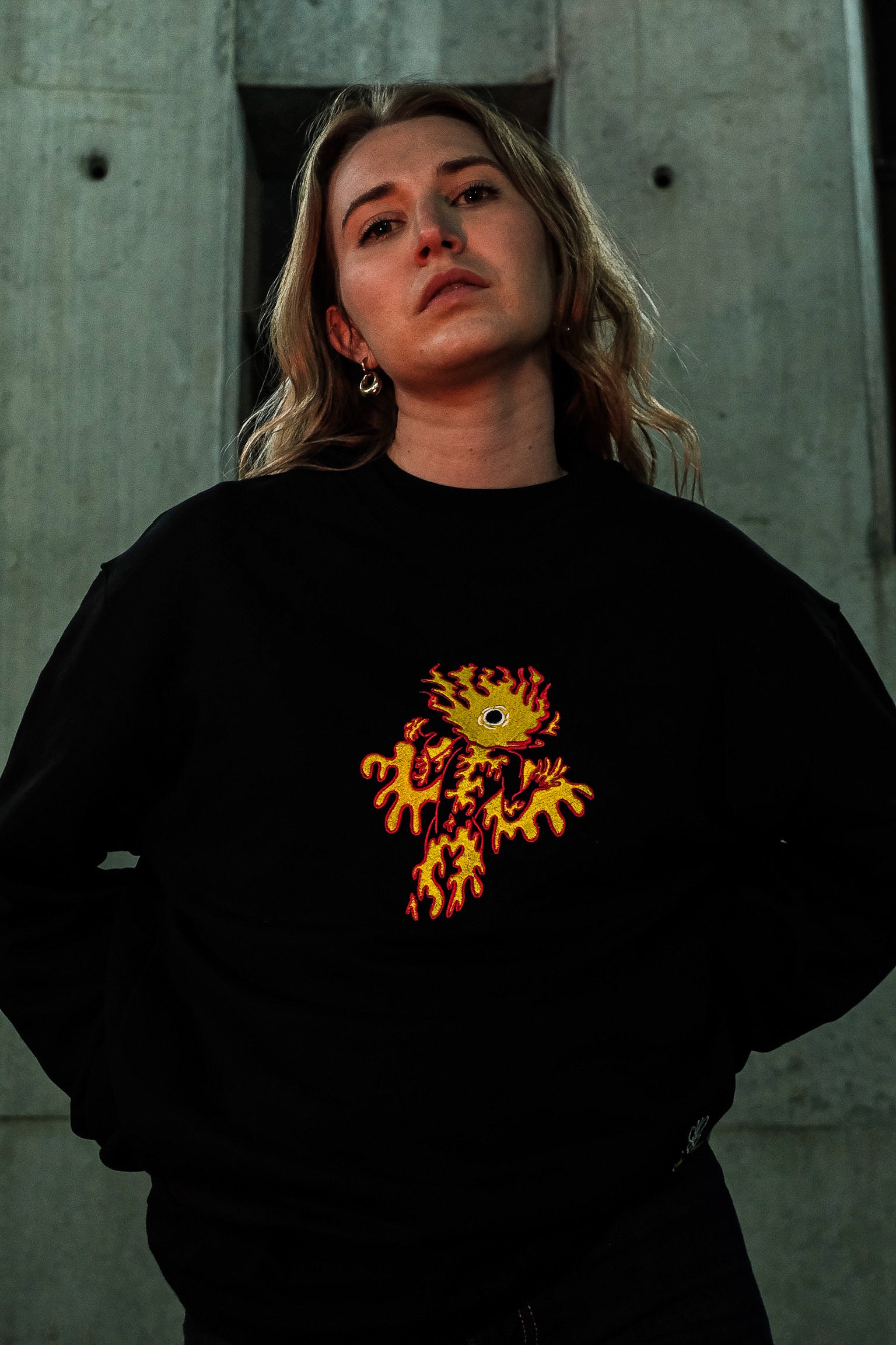 Sweat en coton noir. Coupe oversize avec broderie à l’avant.